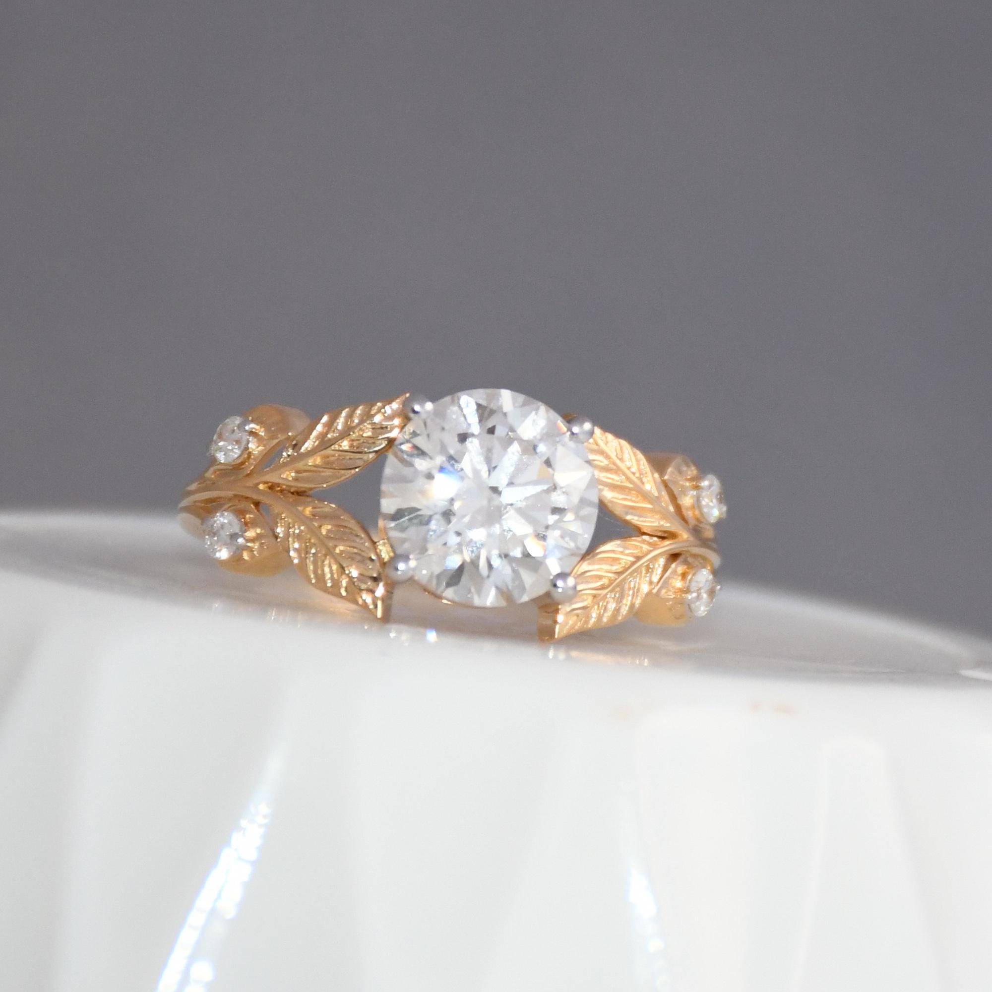14k Solid Gold 2CT Real Natural Diamond Ring | IGI Certified Nature Leaf Engagement Ring | Solitaire Unique Bridal Jewelry |